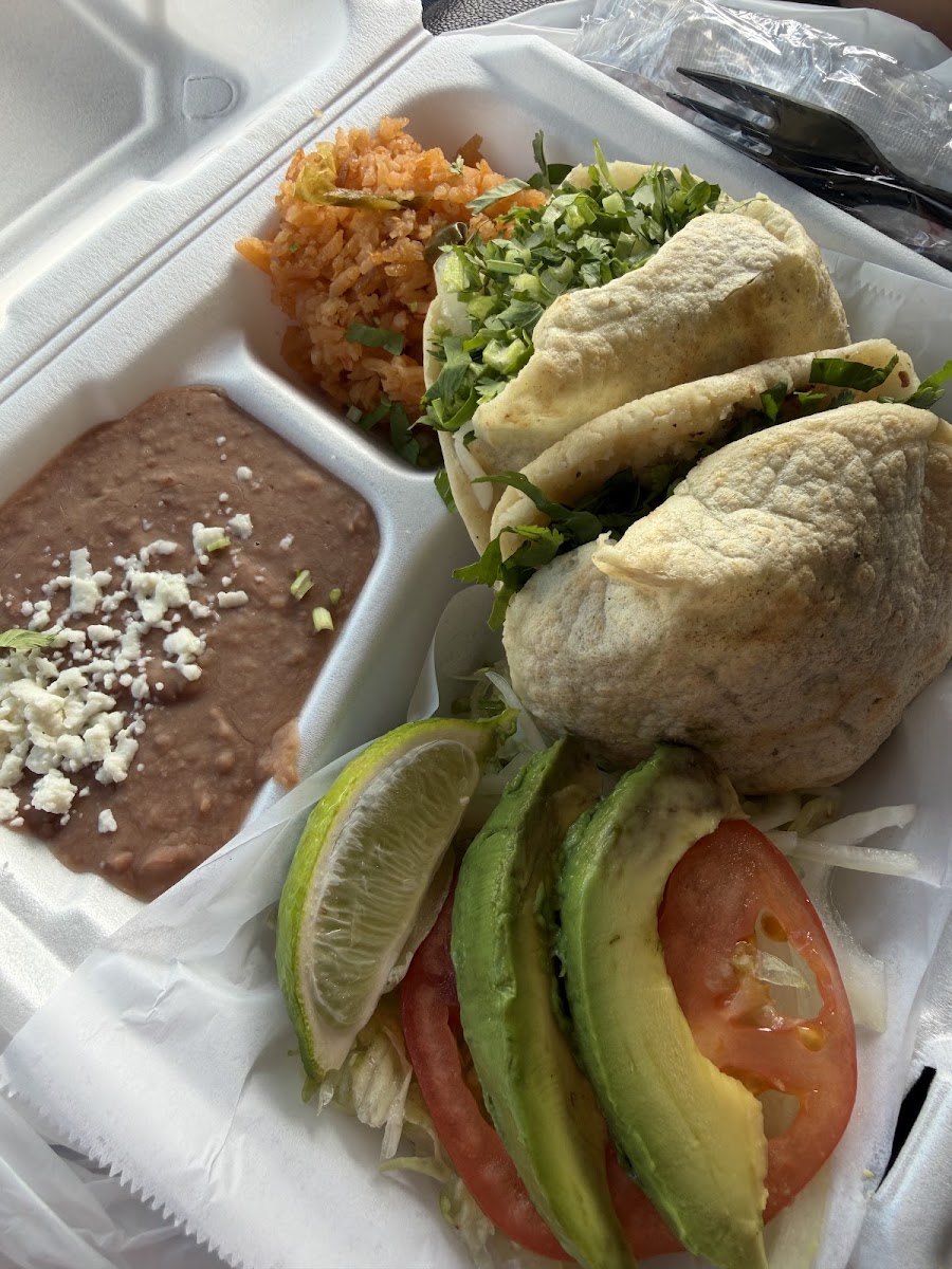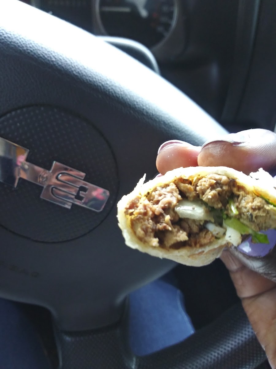 Really goood!!! I was worried because they didn't have what im used to. ( Single tacos) I got the taco plate and I was full before I finished... And finished anyway....I will be back. It's drive-through and walk up. They do have a picnic table area..